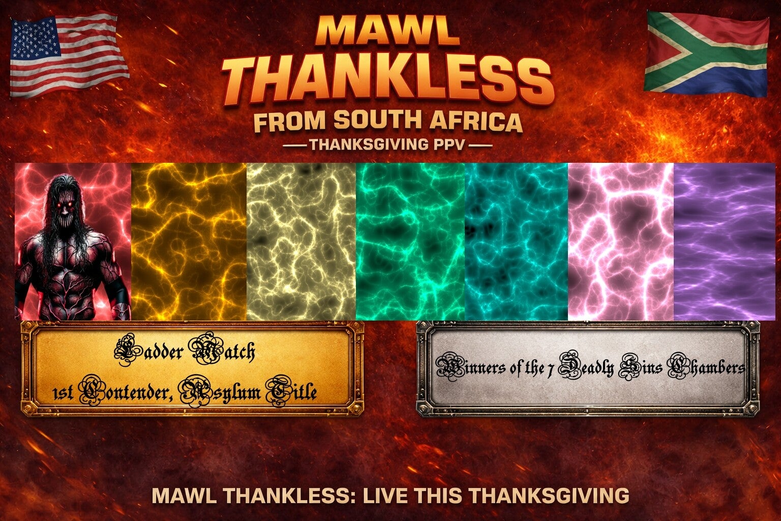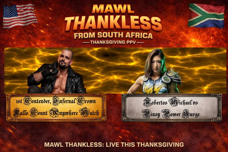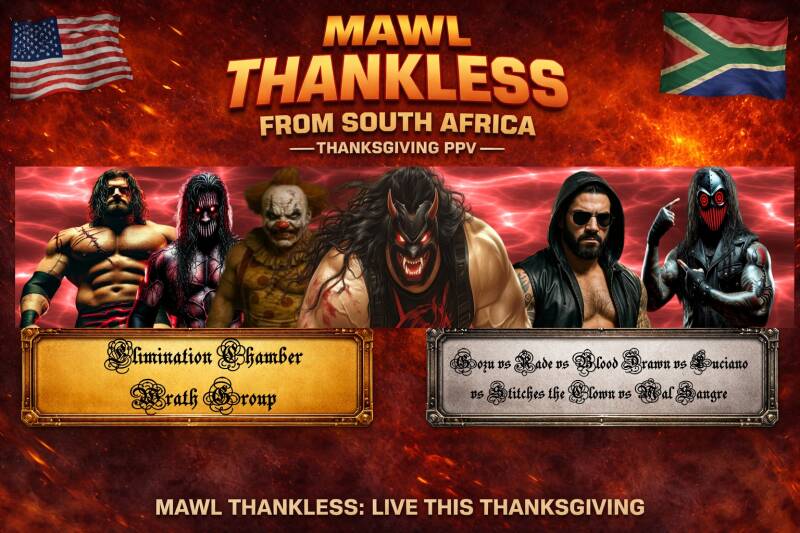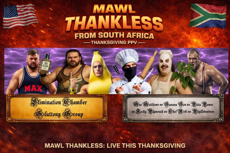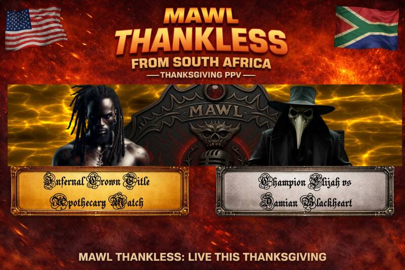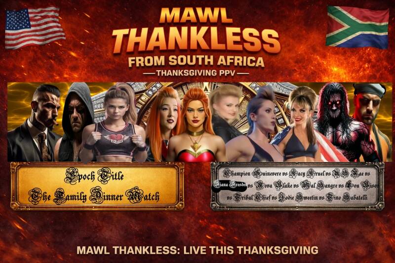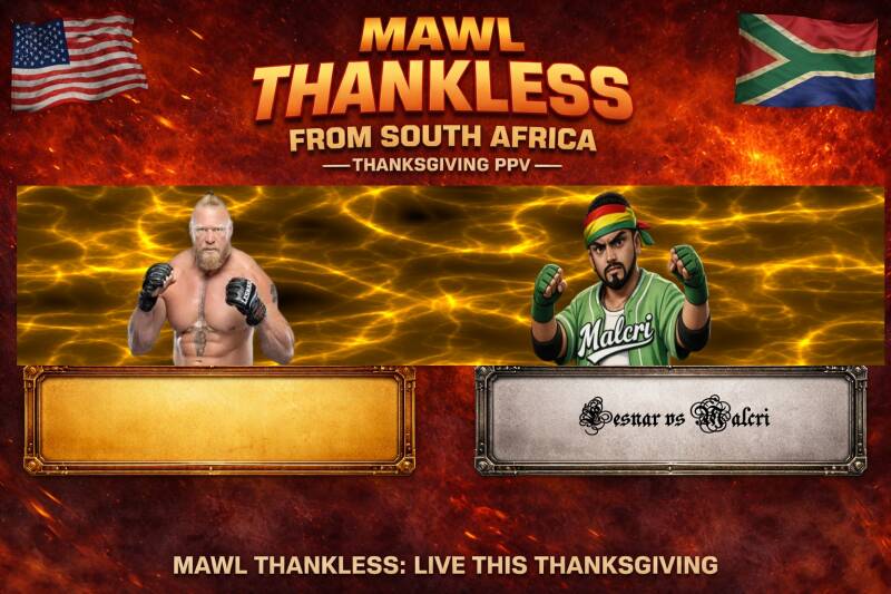 Simon (OC): The 2010 World Cup was situated right here in the beating heart of Johannesburg, South Africa, in an intense game taken into overtime for a 1-0 Final. There have been controversies, there have been concerts, the FNB has seen it all, and now we etch our name into this clay pot for giants, in the annals of the history in a hopefully less problematic controversial fashion as we take you away from your own Thanksgiving holiday brawls to bask in the glow of the Clash in the Calabash, the first-ever international edition of THANKLESS. I'm Simon Apple.
