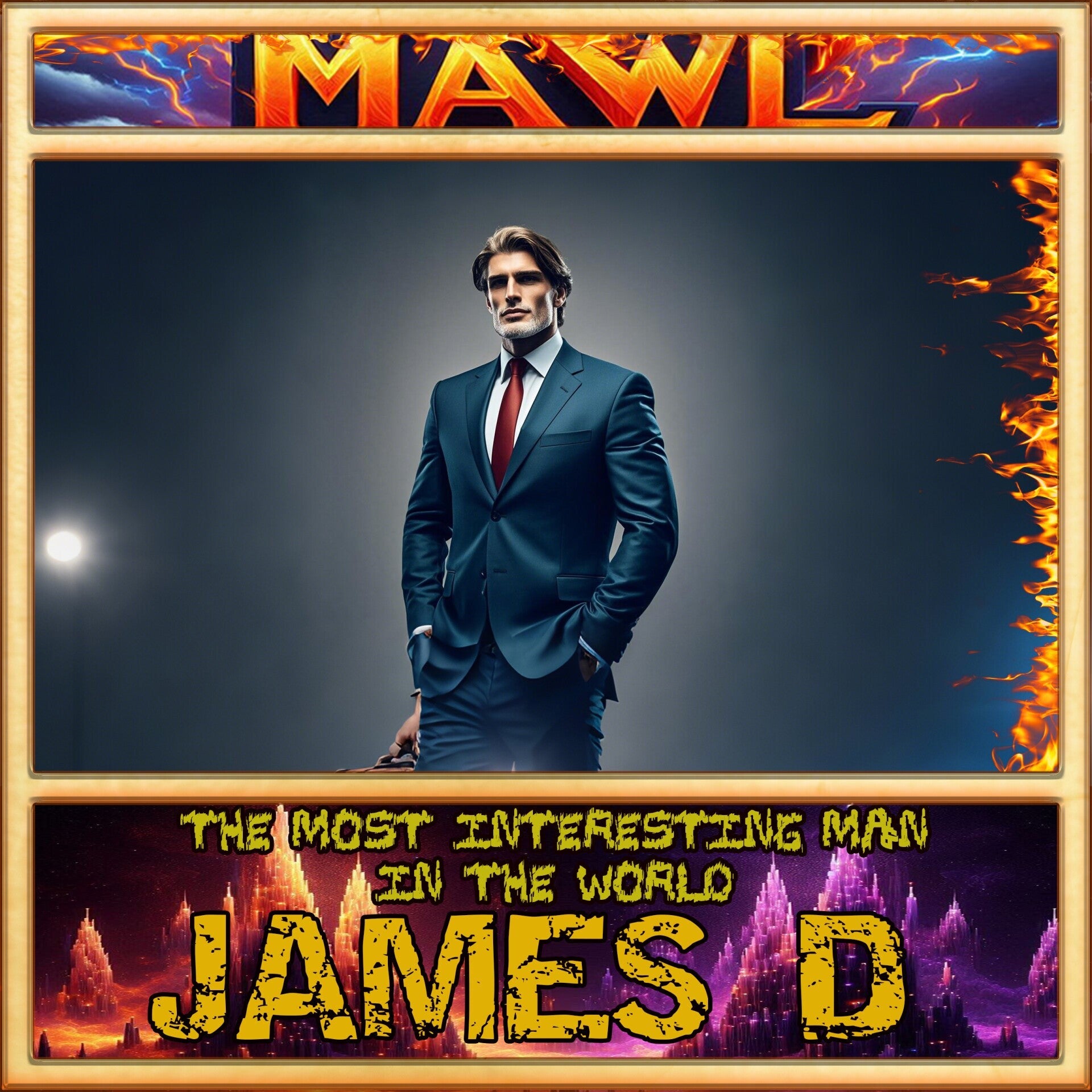 [A faint smirk. He adjusts the championship on his shoulder, the plate catching the red light.]