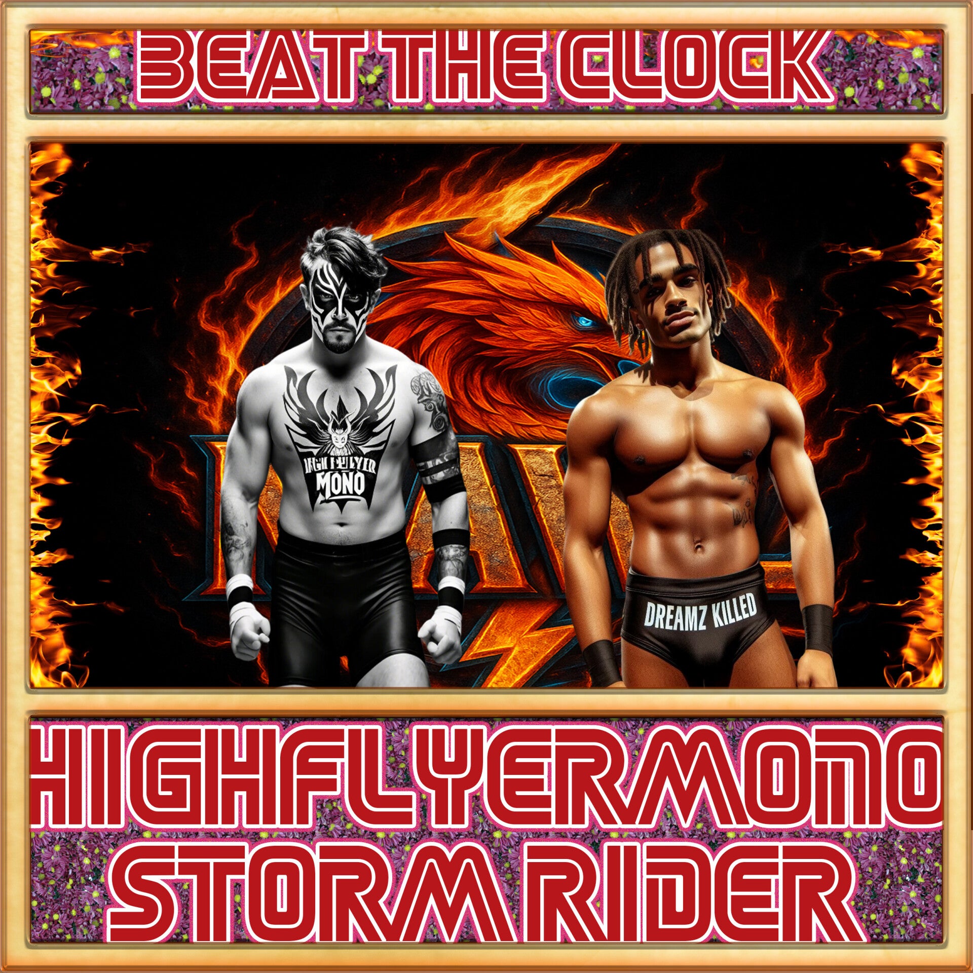 Kendra: Damn right, Simon. We have two monsters going to take their chaos all over this dang ship. We've got a Broken Mirrors Match that Colin set up a few weeks back when Vain Plato demanded a title shot. And, if you caught recently that Tragedeigh returned in all her Swampy Glory, she'll be challenging Manta Ray for the belt he very recently got back from Vain Plato. And of course, Ishani has her first title defense of our brand new Top Title against an opponent to be determined by a Beat the Clock Challenge. Oh! And your buddy Gozu defends his title against Scott Razor.