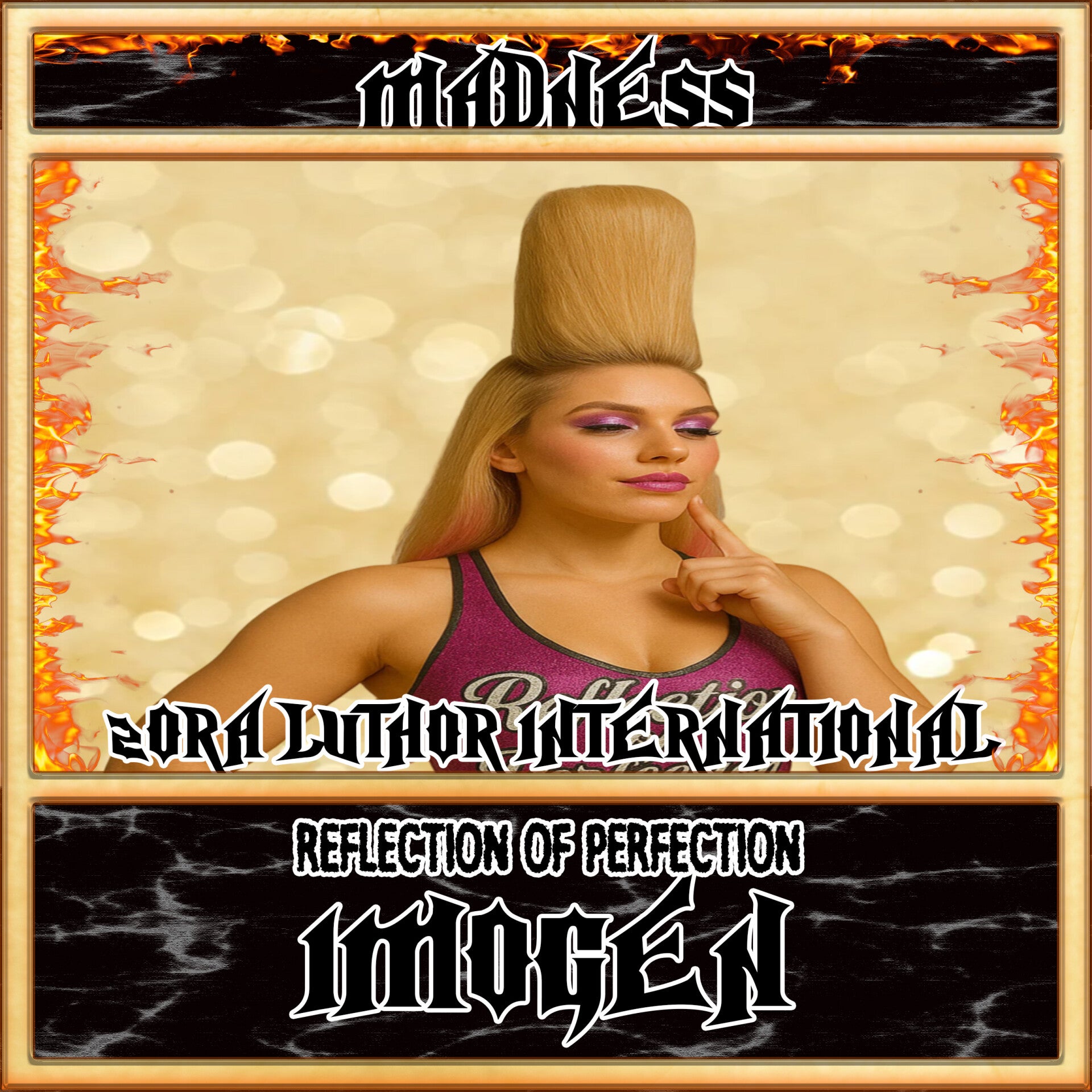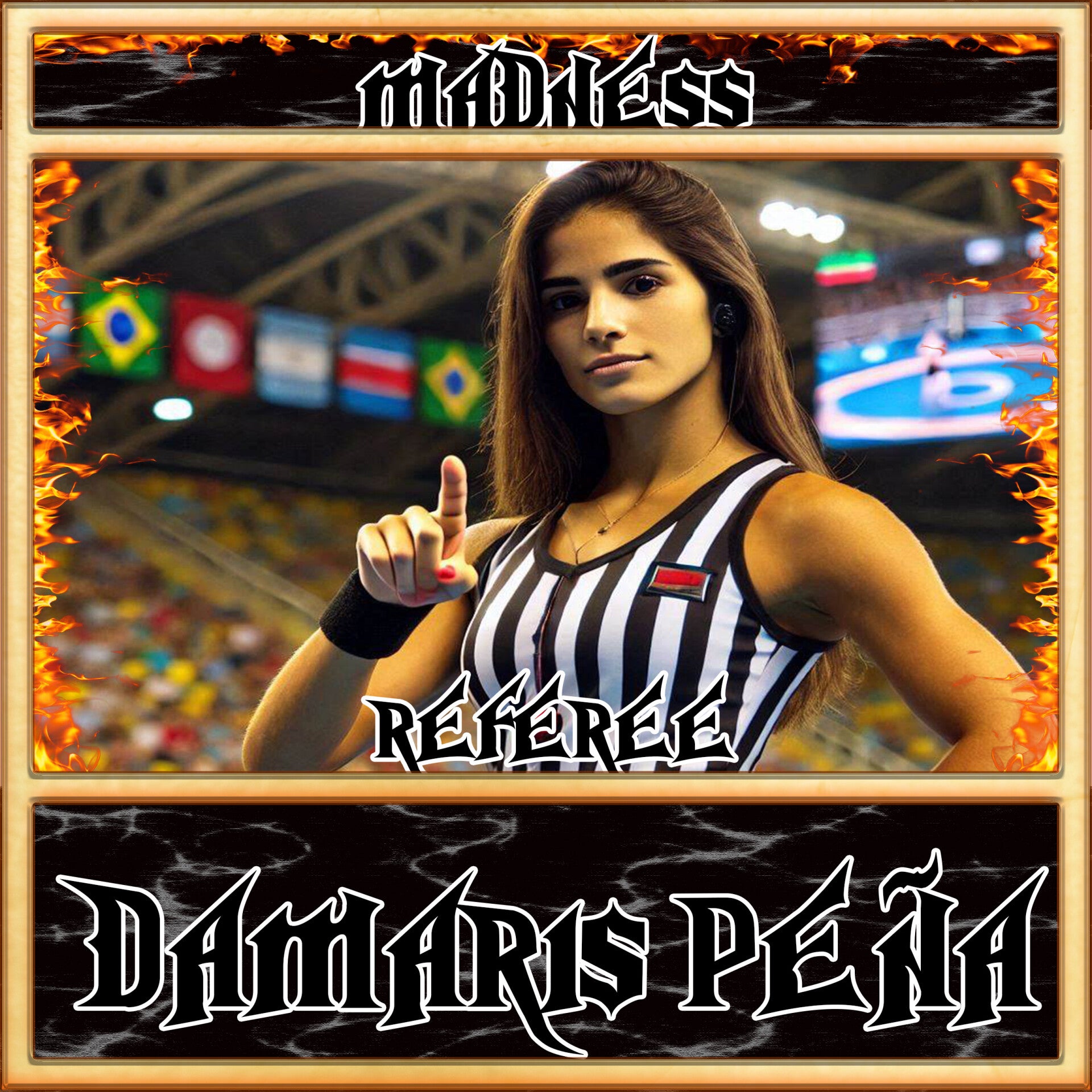 Gold sparklers follow her as she runs down the ramp, high fiving everyone. She does a no-hand front flip into the ring and holds up the belt.