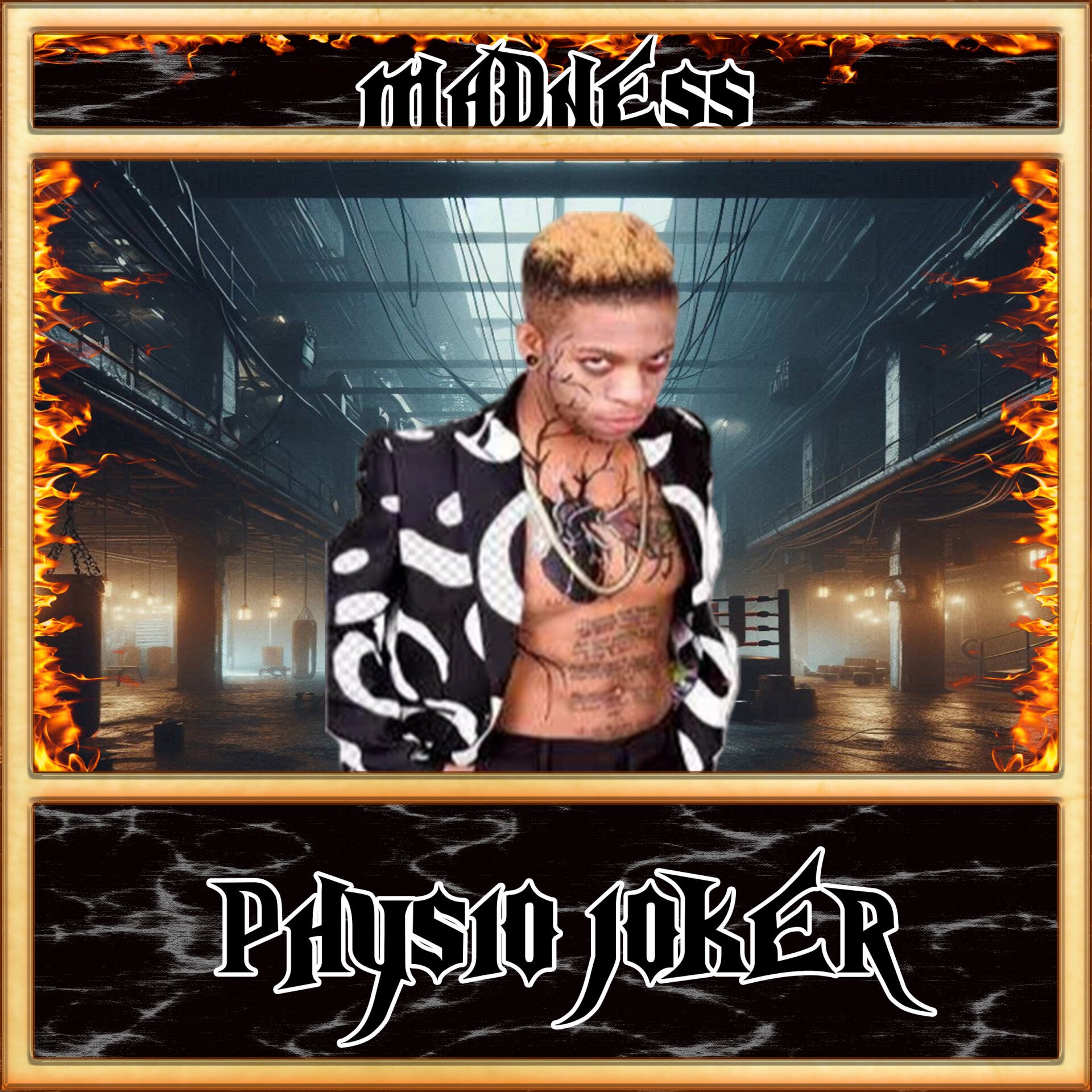 Blackout. Then sudden bursts of neon laser lights cut through fog. Ty appears in a crouch under a UV spotlight, rising slowly in sync with the bass drop.