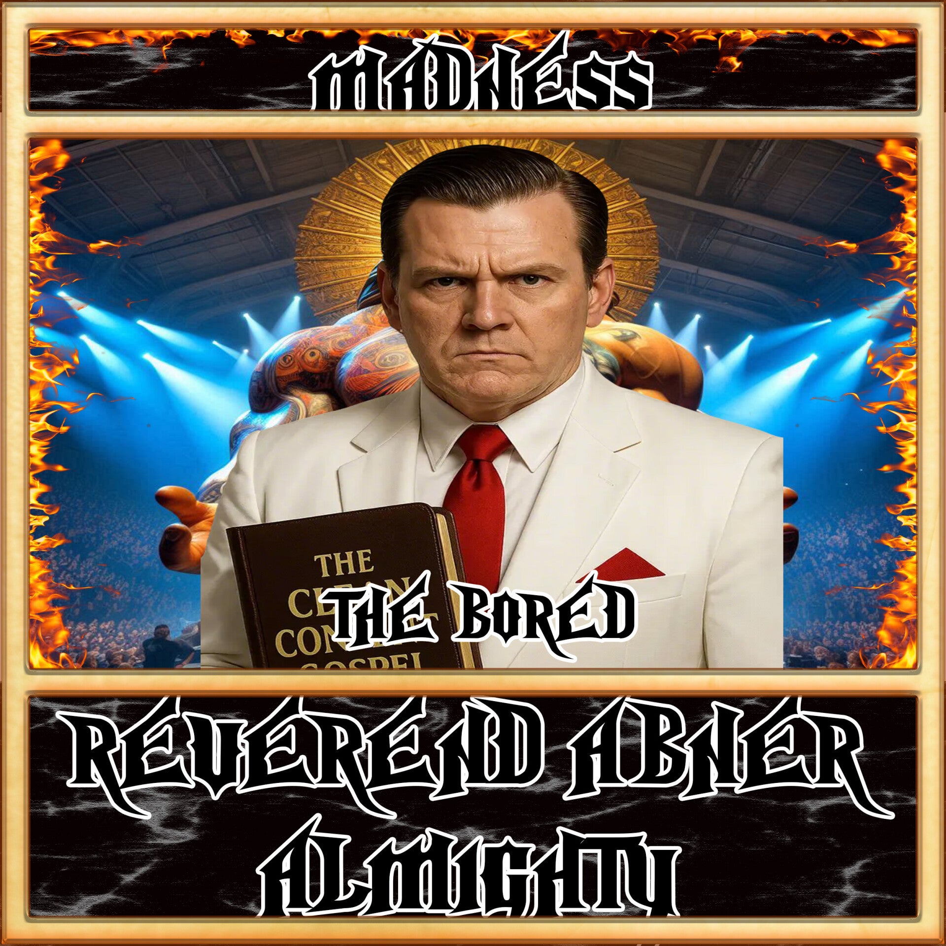 Reverend Abner walks down the ramp clutching his Clean Content Gospel to boos.