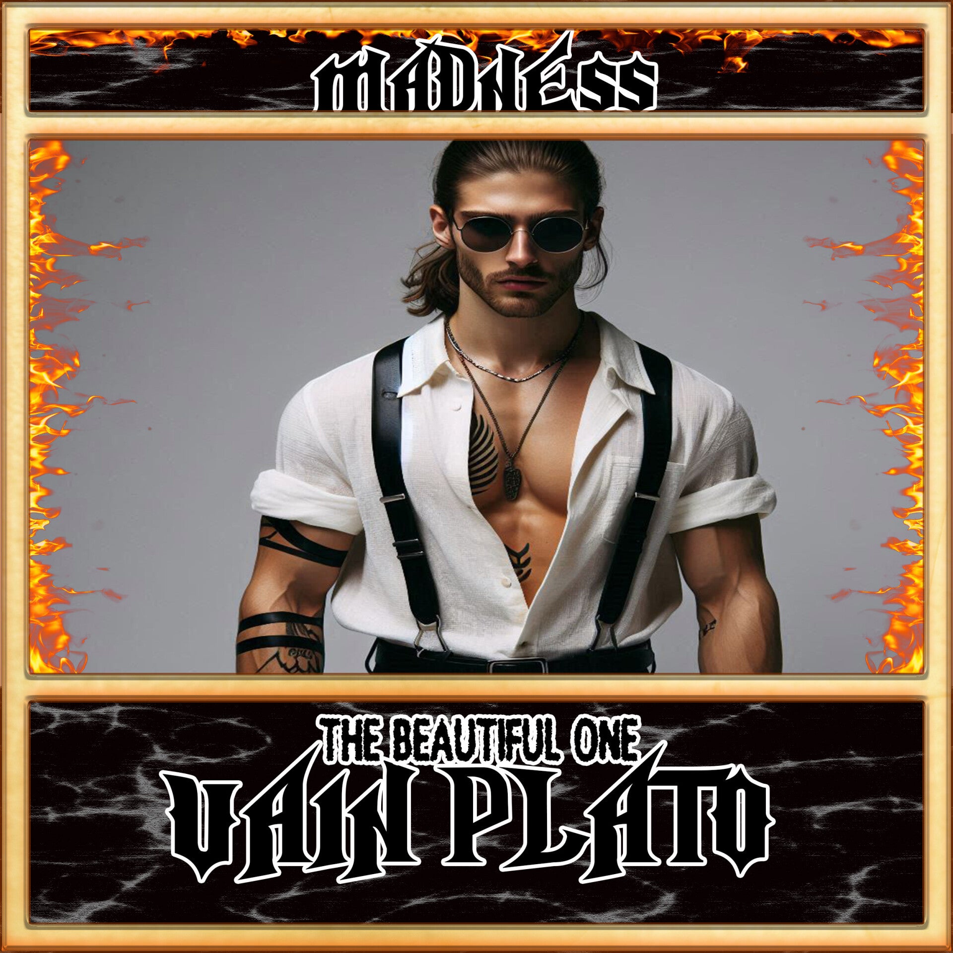 Kid Kross saunters down to the ring with his flashy blue and green vest with a facial depiction of “the green bastard”, a local Sunnyvale wrestler. He has his aviators on carrying a hockey stick over his shoulder. His long hair flowing behind him. Kid Kross kneels down In the ring with his arms out to the side as the music hits the chorus “ Show me the power child I’d like to say, that I’m down on my knees today”. He pops back up when the lyrics say “it gives the butterflies, gives me away until I’m up on my feet again”. He climbs to the second rope and raises his stick in unison with “OUTSHINED, OUTSHINED, OUTSHINED, OUTSHINED!”